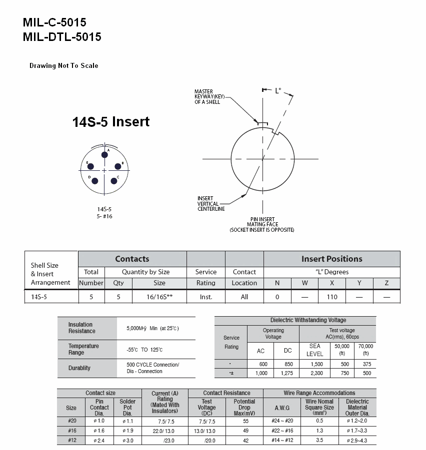 MIL-DTL-5015 MIL-C-5015 Insert For Use in: